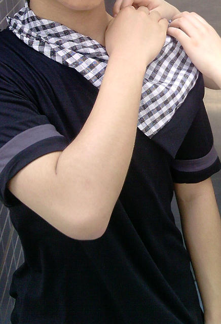 英倫風 2010必備新品 人氣時尚格紋圍巾V領T恤$75