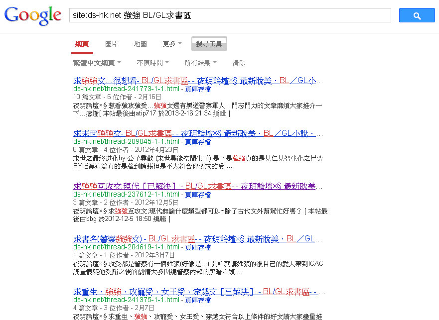 打上想找的關鍵字+BL/GL求書區,如「強強(空白鍵)BL/GL求書區」